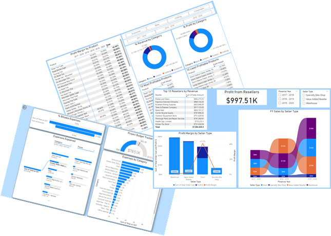 Multi-page dashboard in Microsoft Power BI (both desktop and phone display versions)